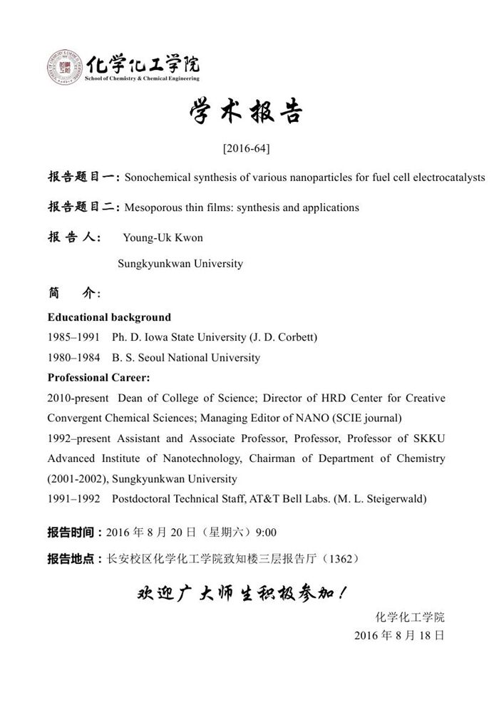 学术报告预告[2016-64]