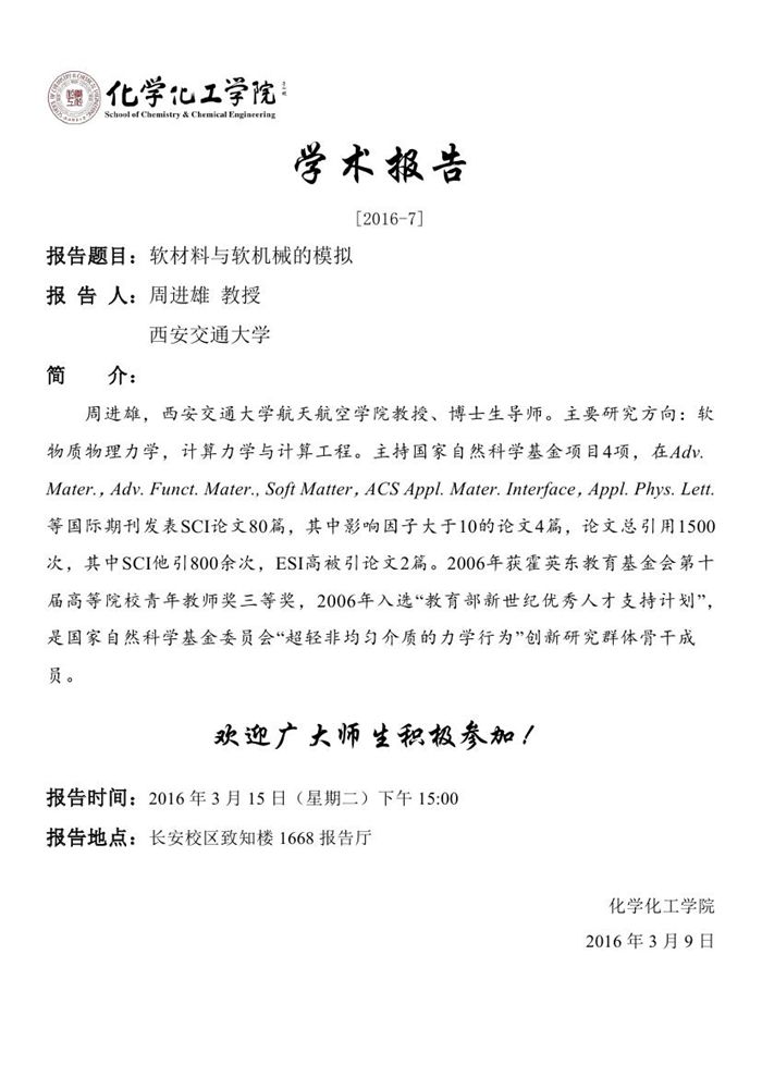 学术报告预告[2016-07]