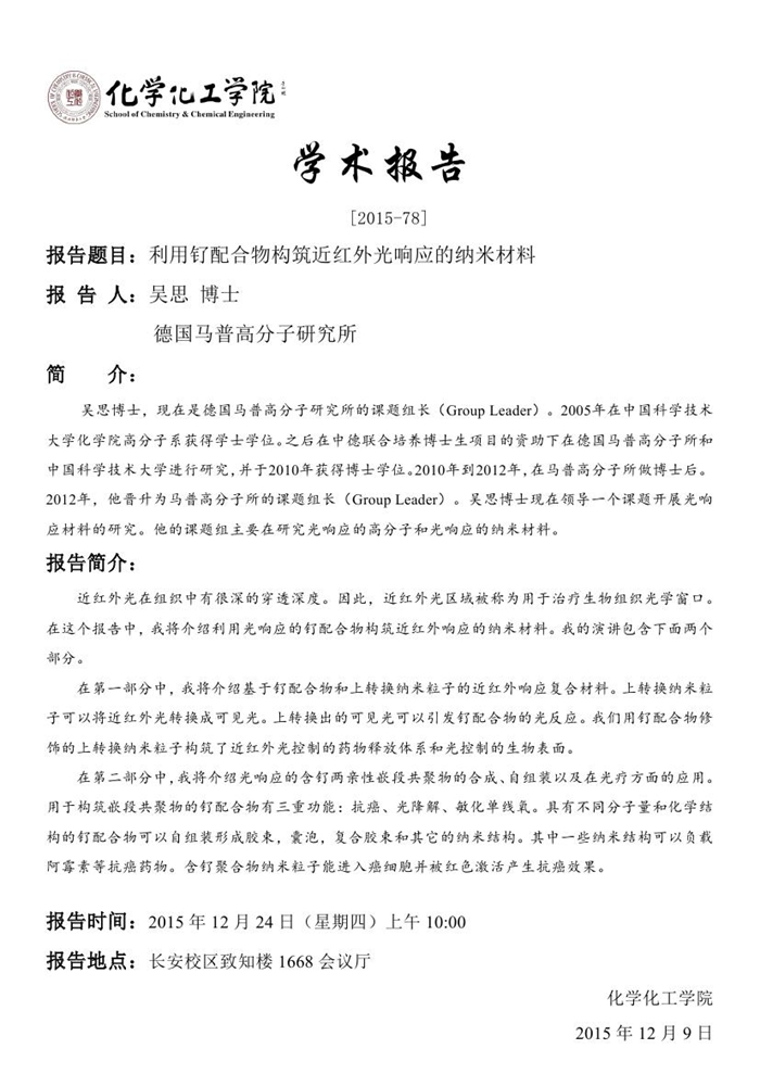 学术报告预告[2015-78]