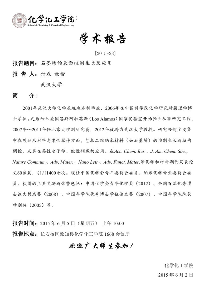 学术报告预告[2015-23]