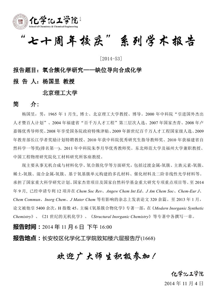“七十周年校庆系列讲座” [2014-53]