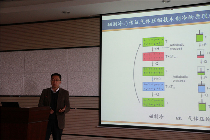 师生奉献了题为“分子基磁制冷剂的制备及性能提升”的学术报告。郑彦臻教授详细介绍了他的研究团队在分子磁体和分子基磁致冷配合物材料方面的研究进展。