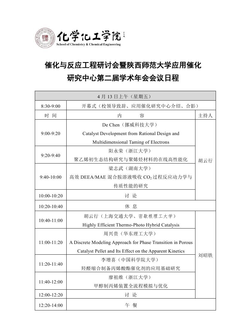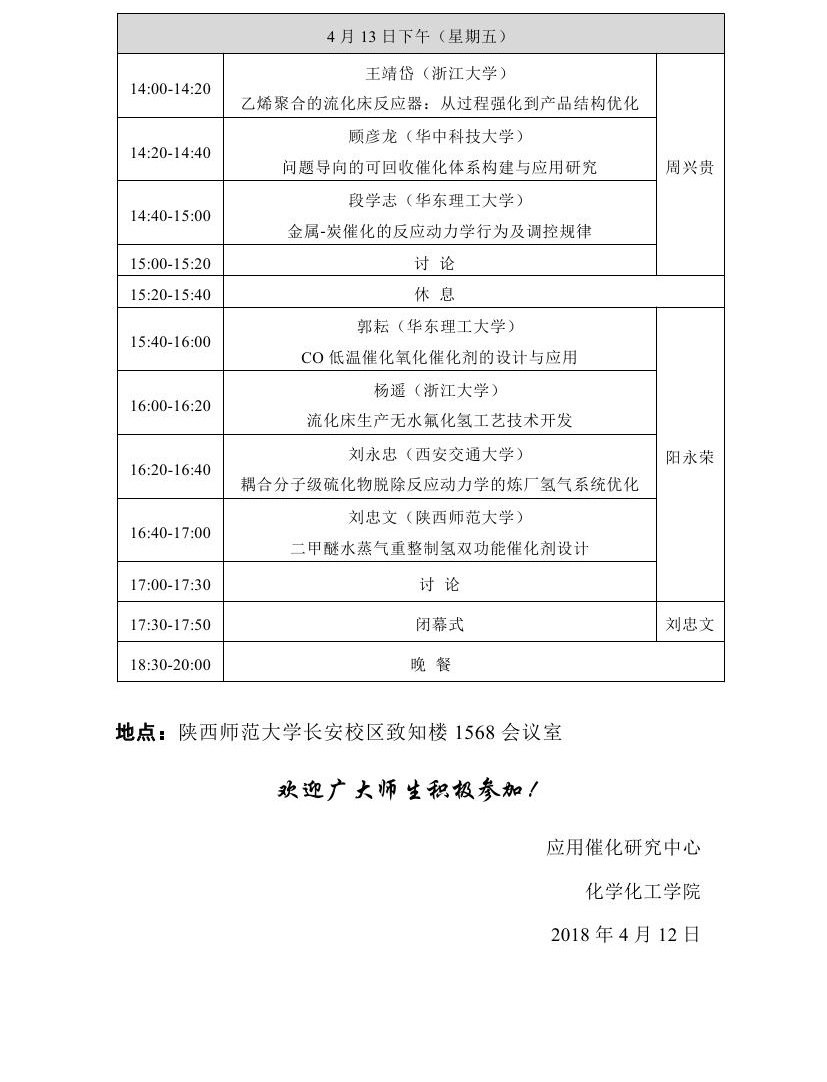 催化与反应工程研讨会暨天使动漫 应用催化研究中心第二届学术年会会议