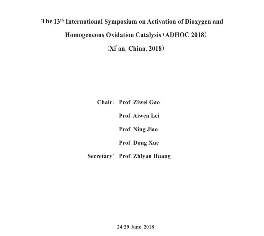 第十三届氧气活化和均相氧化催化国际研讨会(ADHOC)