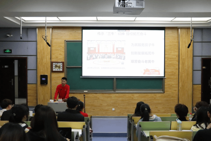 马克思主义学院新时代大学生理论宣讲团的武渤翔和张雅妮两位宣讲员分别以《传承“三牛精神”,接续拓荒奋斗》《弘扬延安精神,奏响时代凯歌》进行理论宣讲。