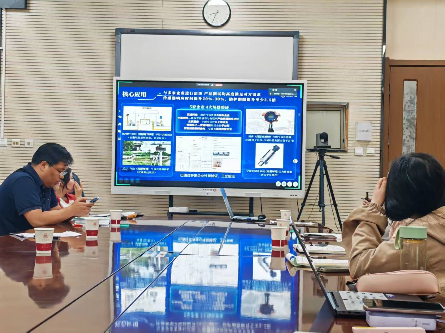 彭军霞老师指导项目《“膜”法护盾——新一代透气防护膜的引领者》、刘太宏老师指导的《直击“苯”质-新概念超高灵敏苯系物传感器》和教育部高校思想政治工作队伍培训研修中心项目《跨越边境的知识之梯:教育公平视角下边境国门教师学历提升需求与路径探析》三个项目的路演PPT提出针对性建议,并与团队成员和指导老师深入交流,帮助其厘清优化方向,进一步完善细节设计。