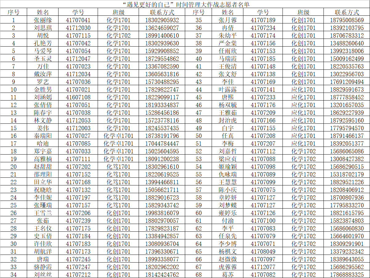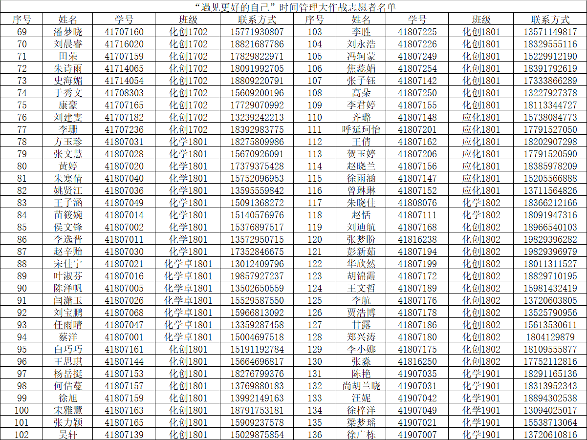 根据《关于公开招募天使动漫 “遇见更好的自己”时间管理大作战活动志愿者的通知》要求,按照天使动漫 “遇见更好的自己”时间管理大作战活动志愿者招募条件,通过公开招募、自愿报名、择优录取,拟定张丽缘等204名同学为活动志愿者,现予以公示。