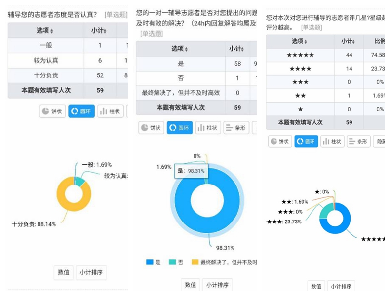 本次活动为志愿服务类活动,志愿者的辅导内容可从专业知识经验、教师教育、考研分享中进行多项选择。前期的志愿者招募工作于学院高年级中展开,共筛选招募了44名志愿者。根据报名情况,工作人员提前做好匹配工作,并完成公示。活动开展期间,志愿者提前准备辅导资料,熟知上课内容,通过线上平台直播分享等形式对所选内容进行全方位的讲解,同时保存上课板书和笔记,并在课后进行经验交流和答疑解惑。期间,学院对各匹配成功的辅导工作进行跟进,收集活动资料,并发放了“关于被辅导同学的意见反馈”调查问卷,用于及时反馈学生建议以确保活动正常进行。数据显示,超过百分之九十四的同学认为活动效果良好,并期望再次参与此类活动。最后,学院根据收集资料以及学生反馈情况,评选出了刘怡帆等五名优秀志愿者。