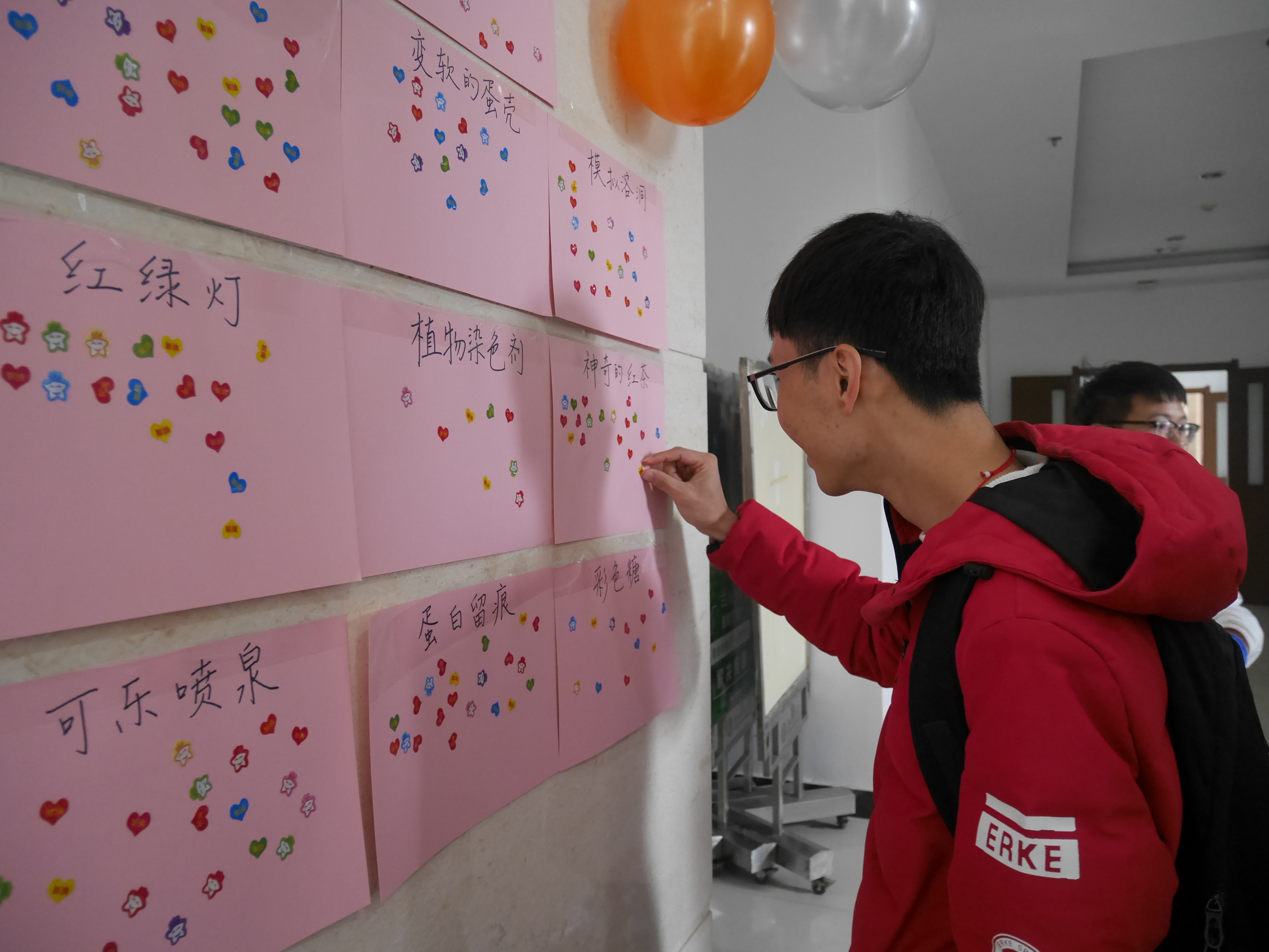 活动开始后,各个团队“各显神通”,尤其是汽水灯笼团队,操作简单,造型别致,寓意深远,以其独特的趣味性和精彩讲述深受评委和观众的喜爱。其他团队也不堪示弱,烧不坏的防火布在酒精灯上自在跳跃,五彩缤纷的彩虹糖展现着色彩的魔力,俏皮的小冰鱼被牵引着上钩,模拟溶洞带人走进一个奇幻的溶洞世界,红绿灯的色彩变换让人啧啧称奇......活动吸引了许多观众驻足,并收到了大量好评。此外,互动答题抽奖区也十分热闹,观众们参与度极高,在提升化学常识的过程中,还获得了精美的礼品。