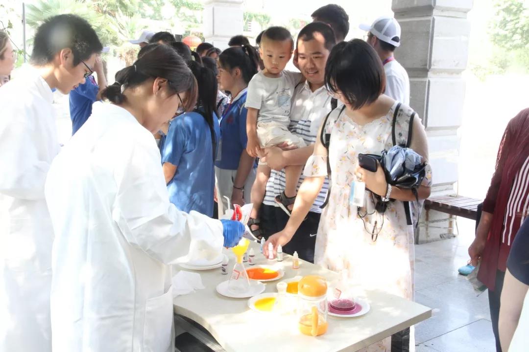 活动吸引了我校各学院学生、来我校游学的中学生、师大社区群众等驻足观看,实验小组为观众带来包括动手拼装、展示讲解、实验演示等不同类型的18个化学元素相关活动,分别是:火山爆发、神奇的红茶、彩色雨滴等。现场观众在演示小组的指导下也尝试动手操作实验。