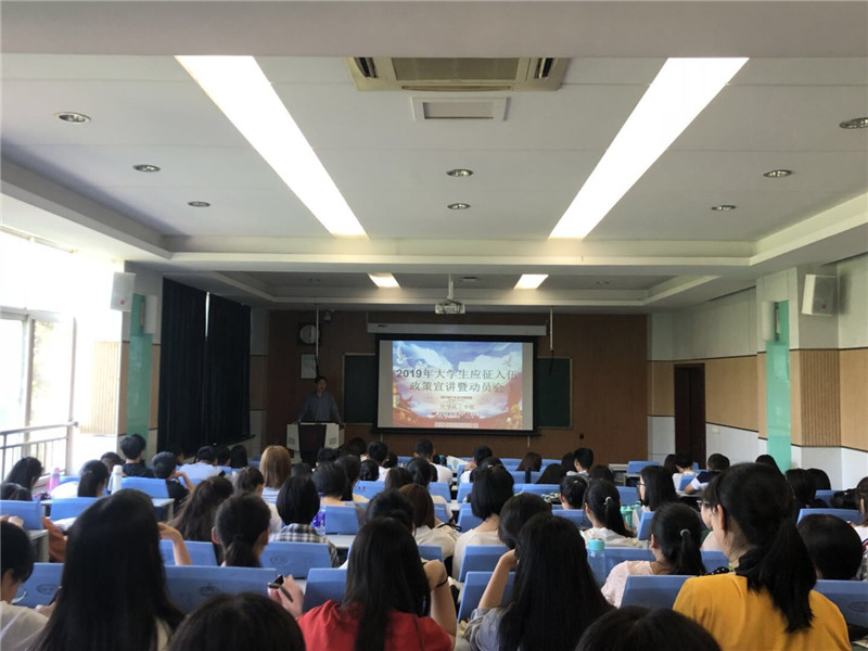 报告会现场播放了2019年征兵宣传片,观看了我校服役大学生士兵部队生活工作视频,国防教育科科长秦维亭通过对大学生参军的意义、应征入伍的条件、应征入伍的优惠政策、应征入伍的程序等几个方面的解读对在场学生进行国防动员。学生们对大学生“携笔从戎,建功军营”有了更全面、更深刻的认识。同时,秦老师向在场的学生介绍了近几年来我校参军入伍的学生情况,以及目前在部队服役的学生的近况,为同学们讲解入伍的各项要求,并详细回答同学们提出的问题。最后,秦老师强调,我校举行征兵入伍宣传工作,是我校围绕“立德树人”根本任务和强军目标根本要求,着眼培育和践行社会主义核心价值观,促进学生成长成才,提升学生爱国意识、责任意识的重要举措。同时,他也谈到,参军入伍是同学们重要的人生折点,需要慎重选择、认真对待。