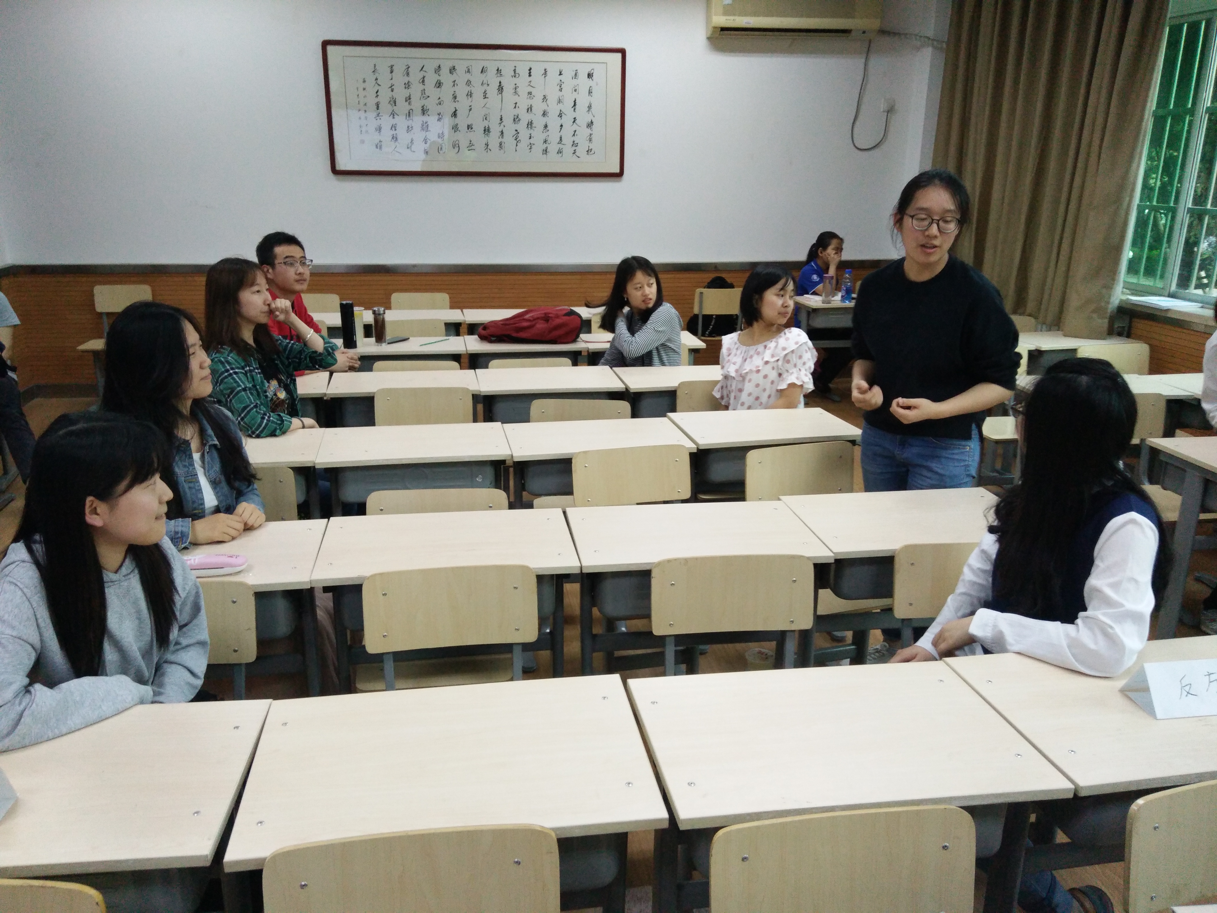 活动开始,班长石苏文同学简要介绍了本次活动的背景以及辩论赛的规则,之后辩论赛正式开始。