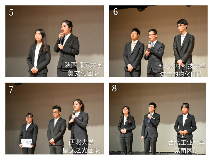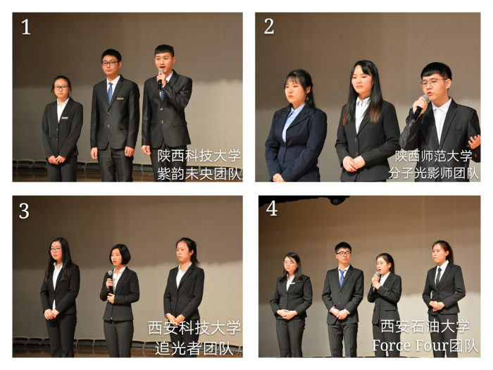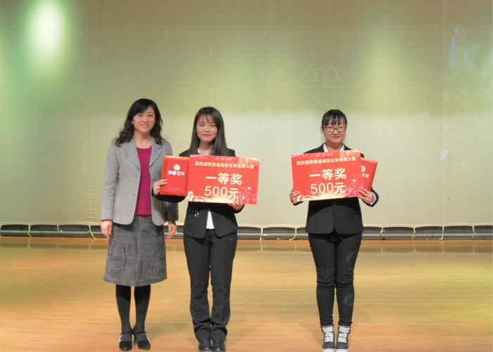 经过三个多小时的激烈角逐,来自西北大学的星逸之光团队作品《纳米世界的医生——分子机器人》和来自我校的Mr.Yeah团队作品《I’m Mr.Yeah》荣获一等奖;西北工业大学无菌团队作品《天下无菌》、西安石油大学Force Four团队作品《石油渗流中的“高铁”》和我校美文化团队作品《流动化学——正在崛起的力量》荣获二等奖;西安科技大学追光者团队作品《荧光探针》、陕西科技大学紫韵未央团队作品《酒化人生》化样年华团队作品《你好,锂先生》、西北农林科技大学进击的物化团队作品《超亲水材料》荣获三等奖。此外,陕西科技大学化样年华团队作品获得了网络人气奖,西北大学学生作品《植物界的瑞星》、西北工业大学学生作品《流光溢彩》和我校学生作品《超能力者——碳点》、《Fake Show》、《你好,水凝胶》、《舌尖上的防腐剂》、《血管守卫者——NO》、《元素周期表之旅》获得优秀奖,薛东教授等11位指导老师荣获“优秀指导老师”称号,西北工业大学和西安科技大学荣获优秀组织单位。