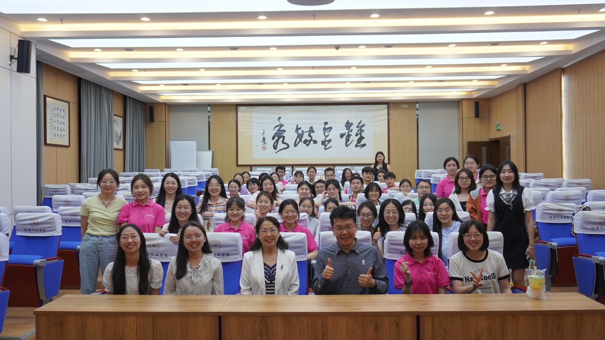 陈亚芍教授在总结中指出,何明家老师的报告给同学们传授了很多在教师口语表达上的技能,可以让同学们这方面的意识觉醒,希望同学们能够在后续的学习中加强自身口语表达与发声技巧,为今后的工作奠定良好的基础。同学们也纷纷表示,何老师带来精彩的专业报告让大家受益匪浅。报告结束,同学们与何明家老师合影留念。