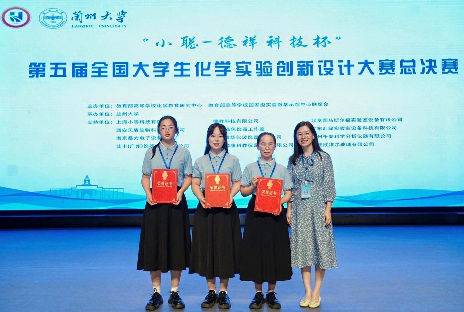 组建了4支队伍,分别参与新创实验、科普实验、改进实验和数智化实验四个赛道的比拼。经过激烈角逐,由吴昕蓉、任盈盈、王建雪组成的新创实验队(指导教师:赵娜、李楠)和张雄飞、张钰涵、隆忠财组成的科普实验队(指导教师:高玲香、王艳艳)均获一等奖,李石超、邵剑波、田茉文组成的改进实验队(指导教师:简亚军、谢遵园)和吴鼎、王俊人、于佳睿、侯翠荣、唐小敏组成的数智化实验队(指导教师:金燕、李保新、王艳娥)获得二等奖。按照赛事规则,获得一等奖的科普实验队直接获得全国总决赛二等奖,新创实验队代表学校晋级参加全国总决赛。
