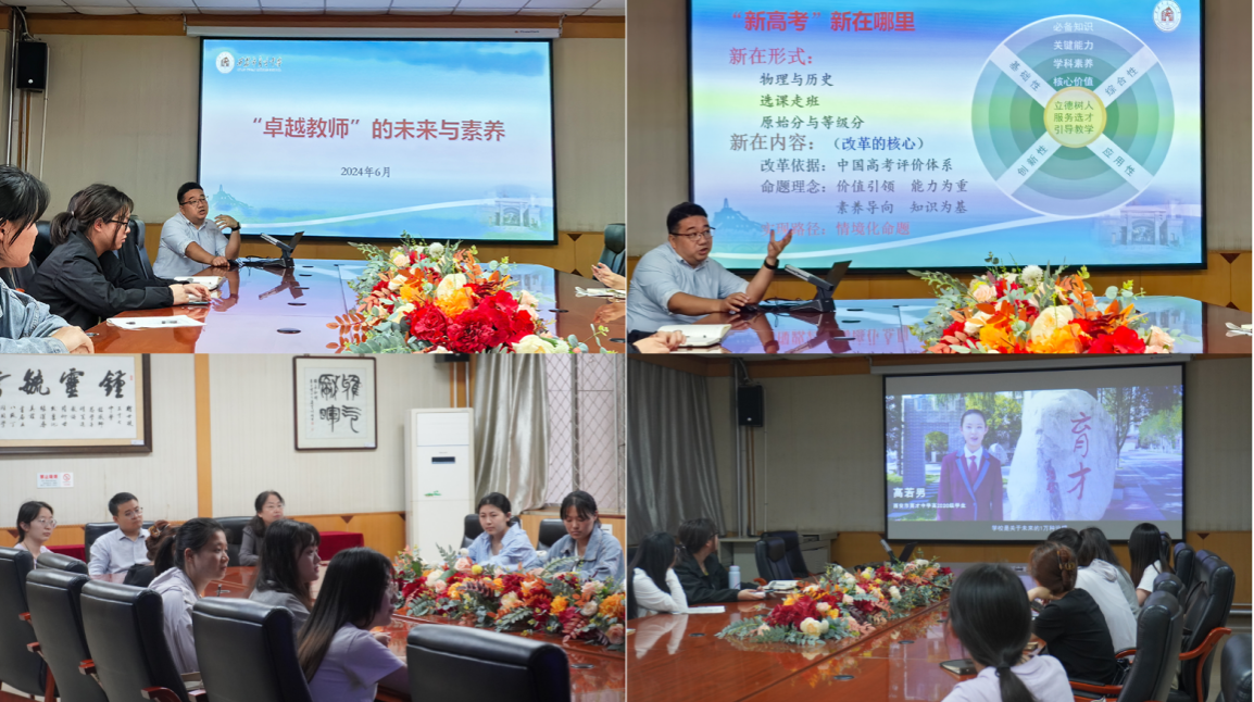 5月30日上午, 2021级化学卓越教师实验班的同学们在高新一中开启了本次活动的第一站。首先,廖传珠主任给同学们介绍了高新一中的发展状况、教学理念、教学特色、教学成果以及师资队伍等内容。廖主任强调了高新一中不到三十年的发展与影响力被公认,老师们秉承“自觉成为自觉,担当成为担当”。廖主任向同学们特别介绍,高新一中以教育为桥梁,心怀大爱,跨越1700公里“面对面”帮扶了多所云南地区学校,通过知识的传递和爱的接力,不仅带去了先进的教育理念和优质的教学资源,更点燃了无数孩子心中的希望之光。