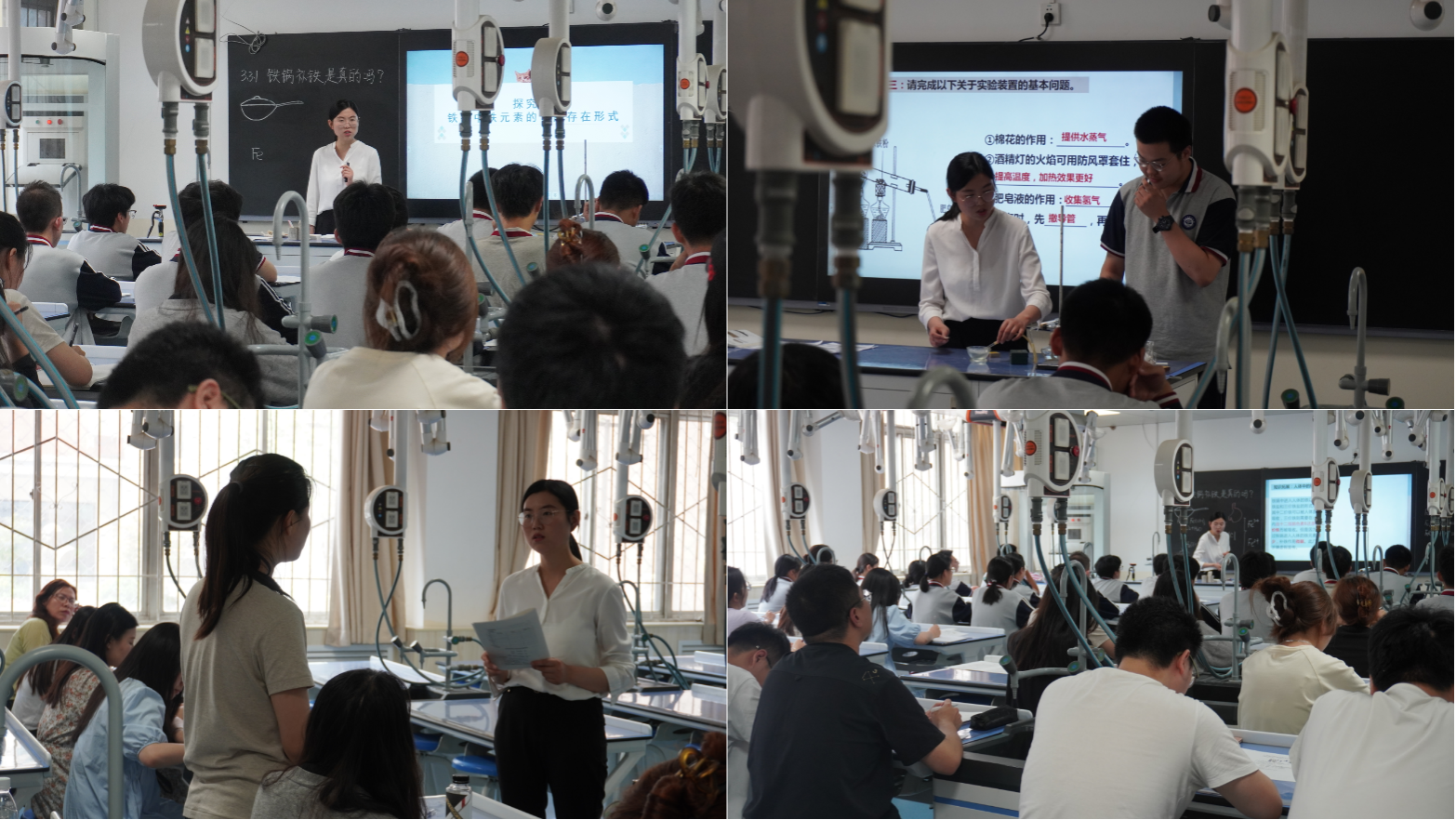 活动开始,同学们观摩了孙丹老师的高一化学公开课《铁锅补铁,是真的吗?》,孙老师授课语言风趣幽默,学生们对化学实验课参与度高,充分体现了高效课堂的理念,堂课知识内容与生活贴切,能够激发学生们的兴趣,帮助学生更好的将知识应用于实际。课后,孙老师对本节课从教材分析、学情分析、教学策略、教学过程、教学反思五个方面展开了说课,她指出自己课堂运用了大单元教学理念,围绕“铁及其化合物的性质和相互转化”单元大概念,设计了“科学补铁”大情境,分别设计了三个课时的教学内容,这种教学手段可以帮助同学们在很大程度上提高学习兴趣、培养综合素养、促进合作学习、增强实践能力。同学们就本节课的教学内容与方法进行了提问,与孙老师进行了互动交流。