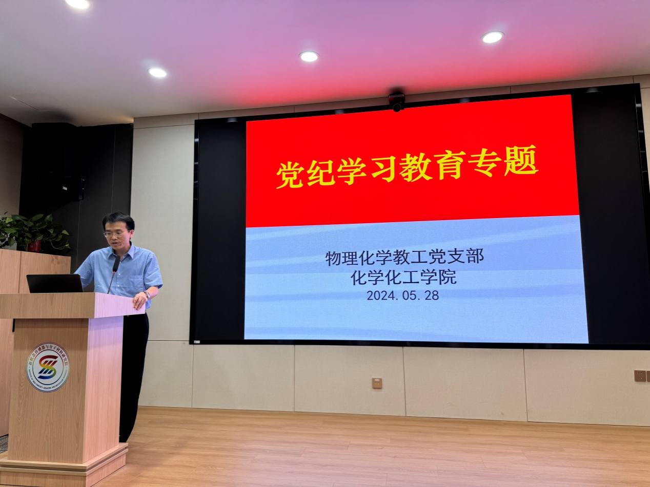 5月28日下午,物理化学教工党支部在新概念传感器与分子材料研究院报告厅召开了党纪学习教育专题学习。会议由支部书记边红涛主持,他解读了新修订的《中国共产党纪律处分条例》,与会老师集体学习了新修订条例内容,内容涵盖了条例修订的重要意义、指导思想及工作原则,以及新条例在政治纪律方面的充实完善和变化。会上还集体观看学习了由中纪委和国家监委网站摄制的《全面加强党的纪律建设》在线访谈视频。