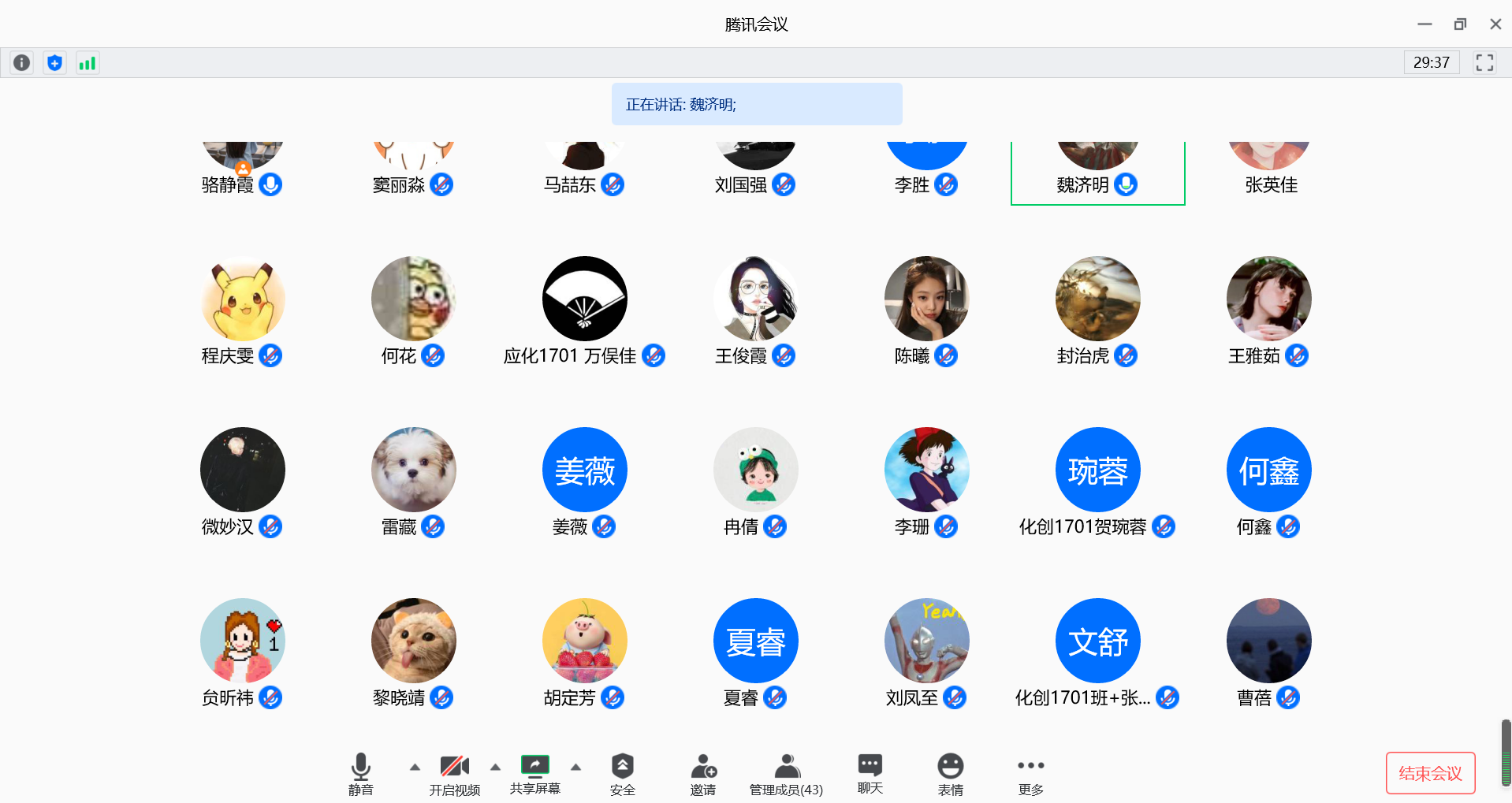 第二部分,党支部依托腾讯会议平台,号召支部党员对身边发生的抗疫小故事进行分享。李汶颖同志分享了家人作为湖南本地第一批抗疫护士,奋战一线的英勇事迹;刘国强同志分享了假期期间,学校为保障师生安全,积极做好防控工作的事迹;魏济明同志分享了2020届毕业生谭秋慧为基层防疫助力,主动前往社区服务站成为志愿者的事迹。会议之后,一部分同志将自己身边的战“疫”故事和感想制作成文档进行了分享。