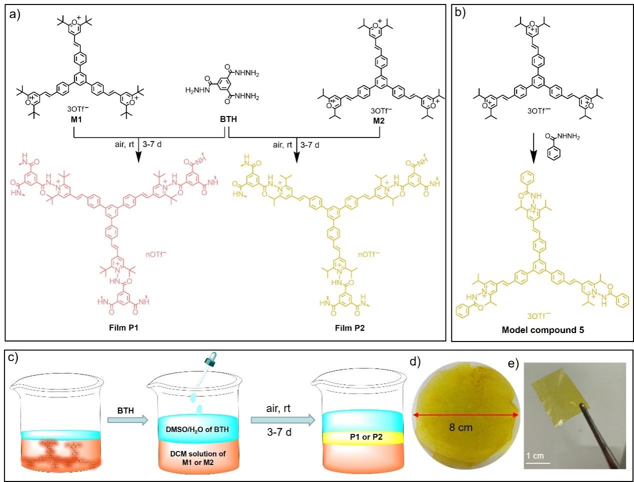 图1 制备薄膜的分子砌块的结构式以及薄膜制备过程示意图