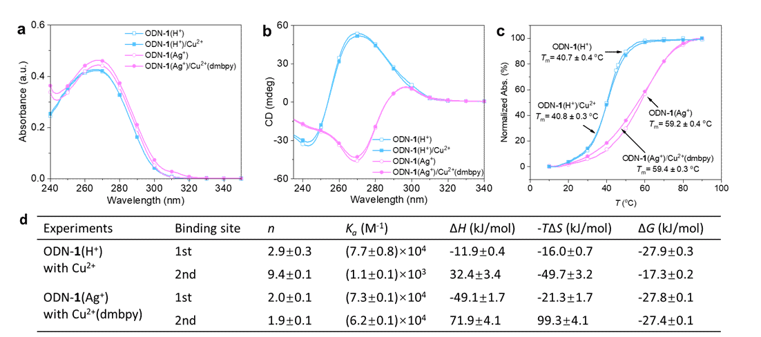 图4. Cu2+物种与ODN-1之间的相互作用